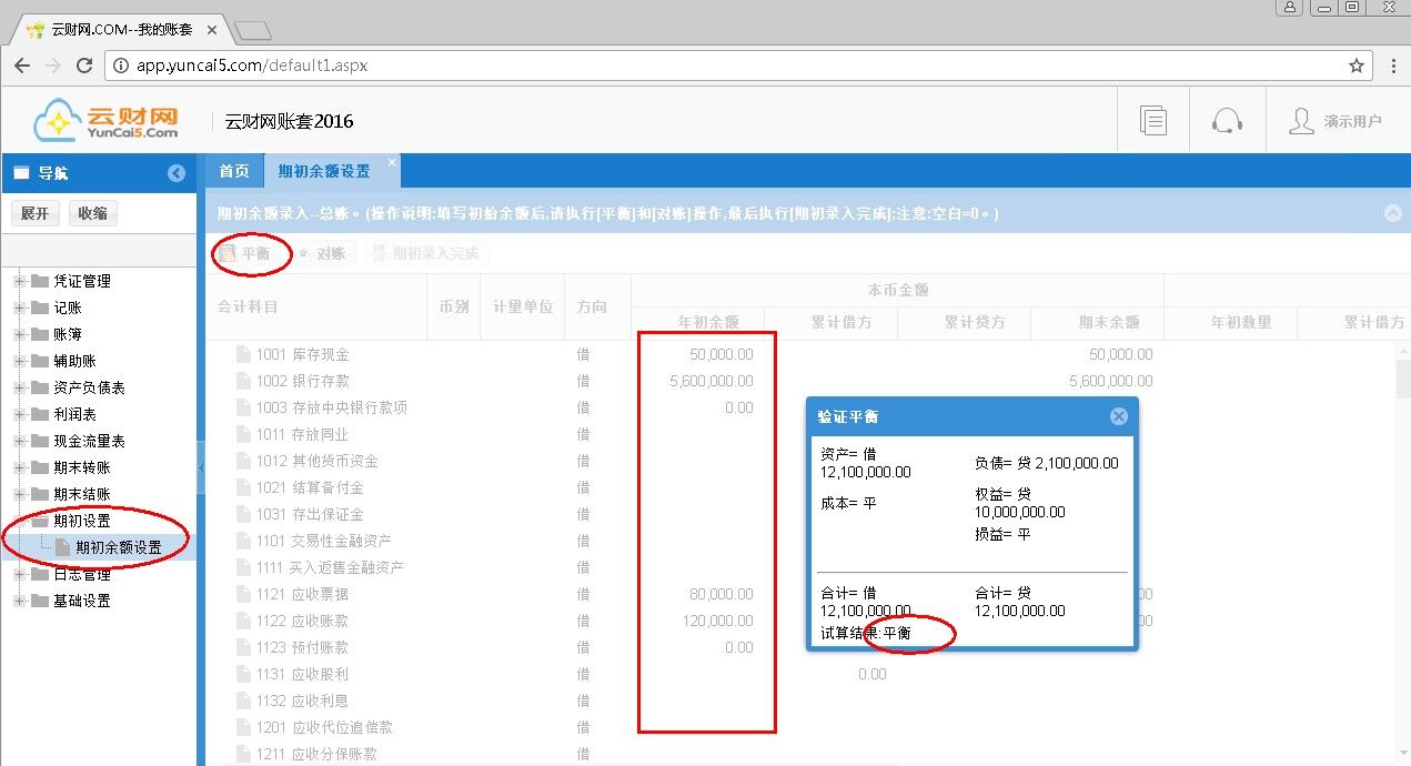 【期初余额设置】完毕,即可开始录入凭证。如果凭证中有科目设置为现金等价物,保存时会提示分配现金流量表项目。